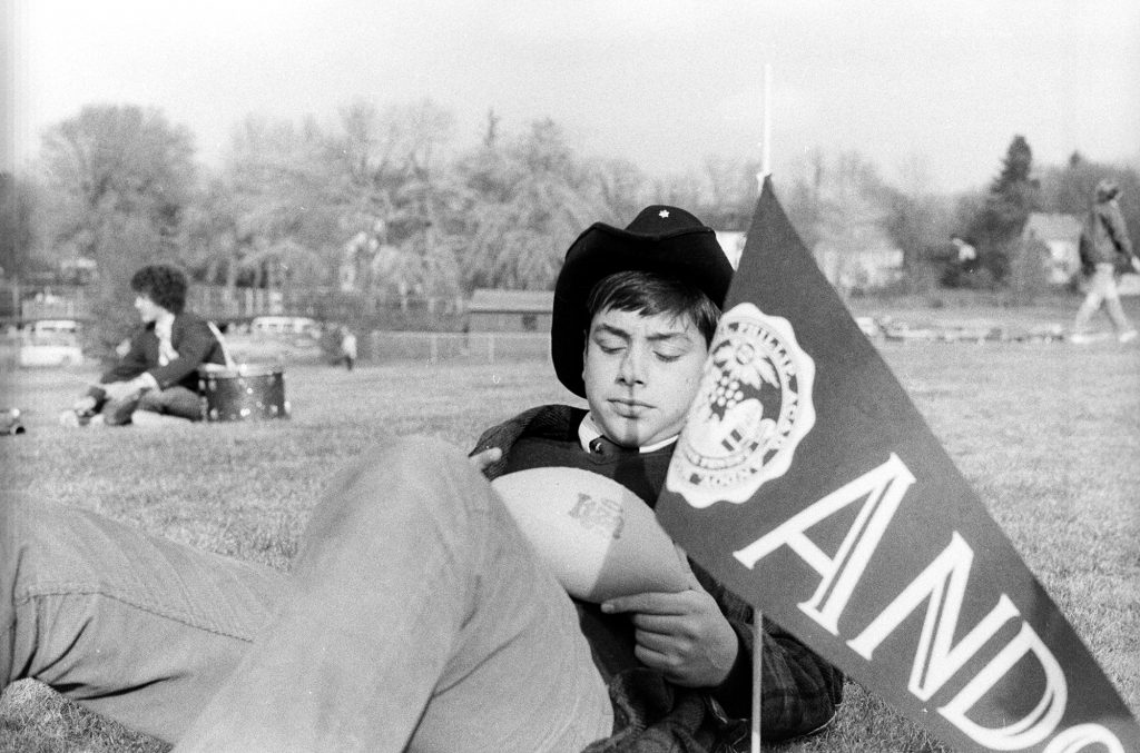 Casey plays the blues… Andover-Exeter weekend probably 1979. Casey was an inspired young lad – staring intently at a nerf football maybe wondering why he was wearing a coat and tie with a school flag at the big game. Not a jock by any means nor a rah rah go big blue cheerleader, more intellectual