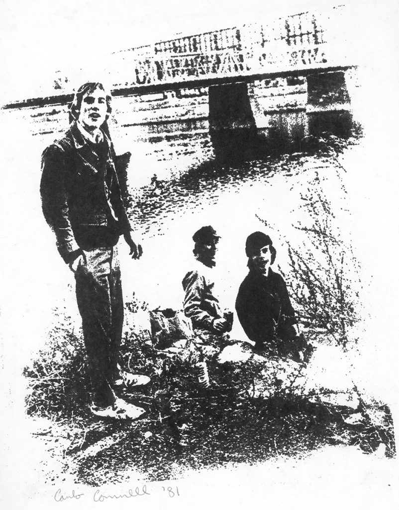This is a photo silkscreen Carlo Cannell created. It’s of Tom, Larry & Bayard down by the river probably in Lawrence MA. I always associate this with first reading Jack Kerouac and the times we went to Lowell to see where he was buried. We were very inspired and influenced by Kerouac and the Beat
