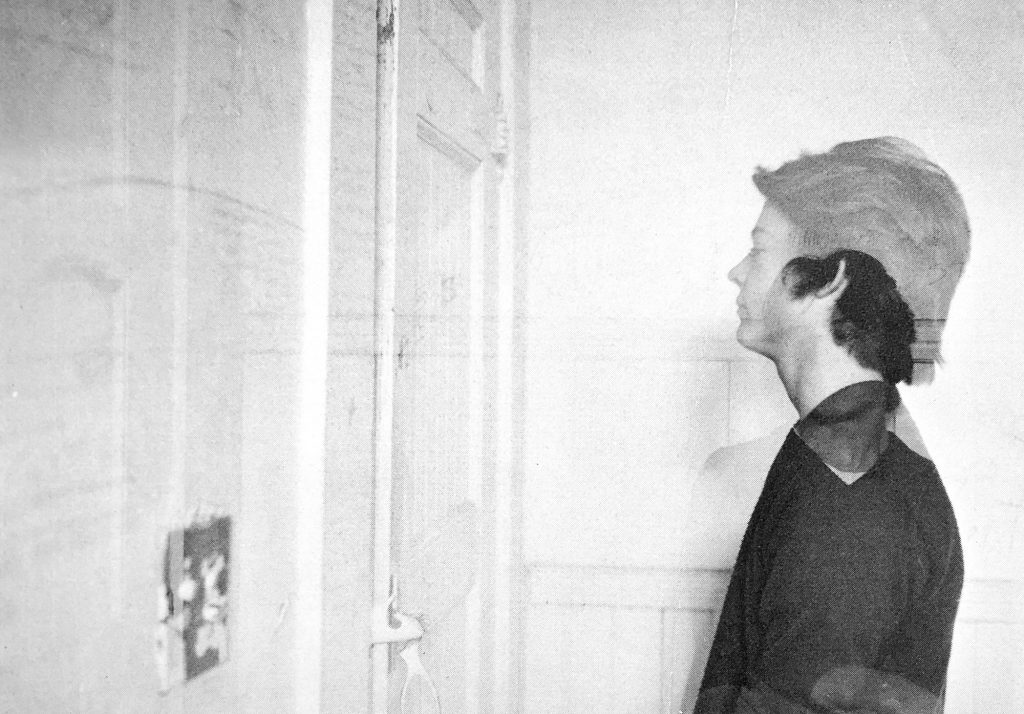 This is a yearbook senior pic I took of a good friend. It’s a double exposure with a 4 x 5 large-format camera and was taken in the basement of the Pot Pourri yearbook room which was in an old building originally the cafeteria supposedly. We were told the closets were where they stored food