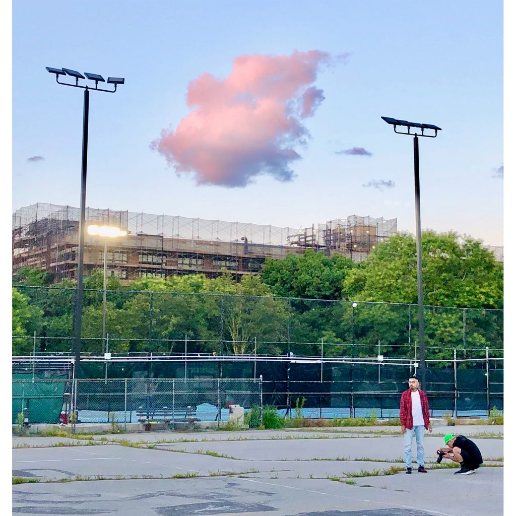 This photo was taken in Williamsburg’s McCarren Park. An odd scene of a guy taking photos of someone’s sneakers and a beautiful singular cloud above. McCarren Park is an interesting place that includes soccer fields, a track, tennis courts, workout area, and backboards for racquet ball or any other ball game you want to play
