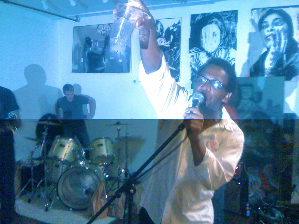Party in Brooklyn where the Yuh Boys played a reunion show and Chris Lee took the mike for some choice words. The split-screen effect happens when another camera flash goes off during the exposure. It’s a dynamic effect that happens only with digital cameras from what I have seen.