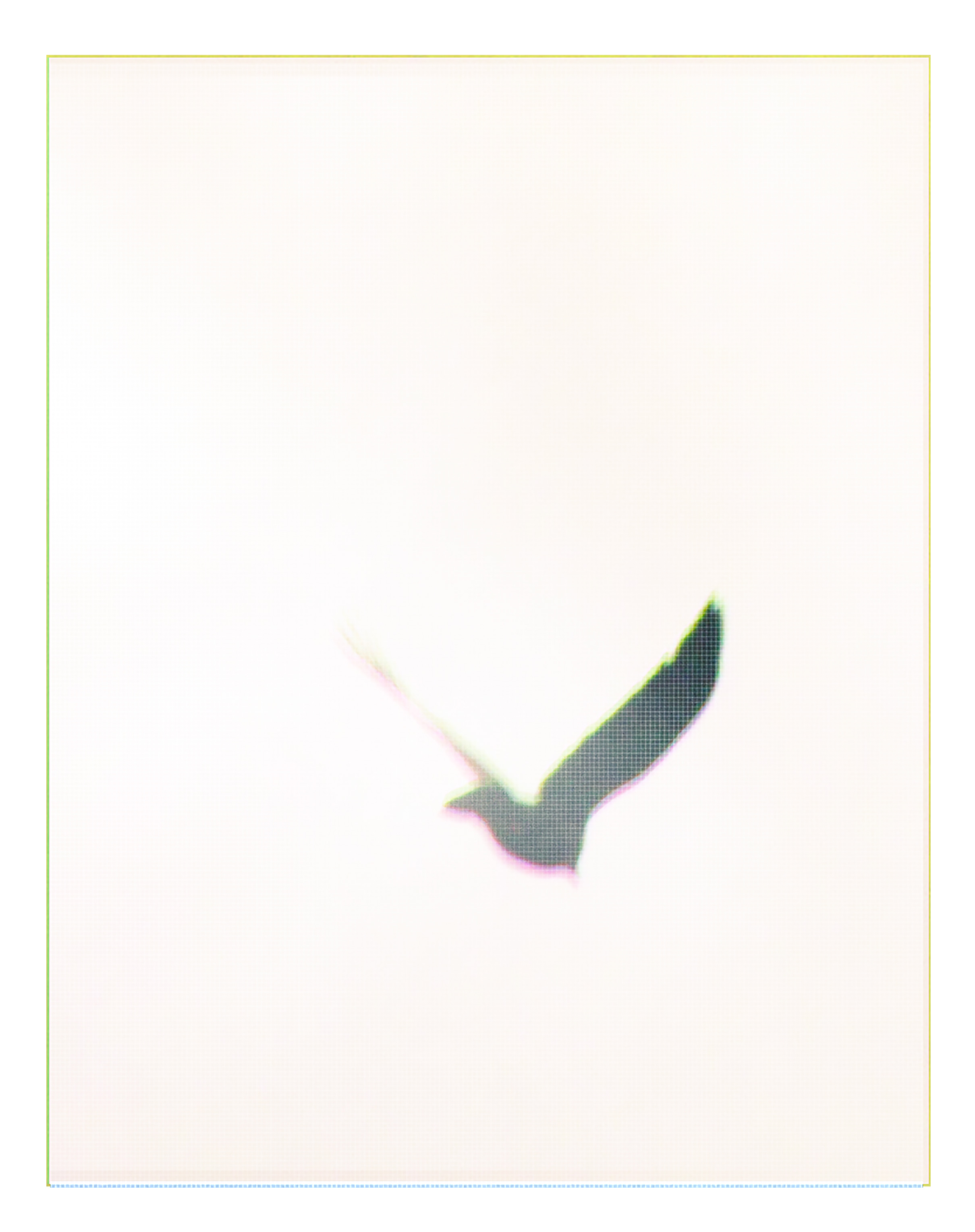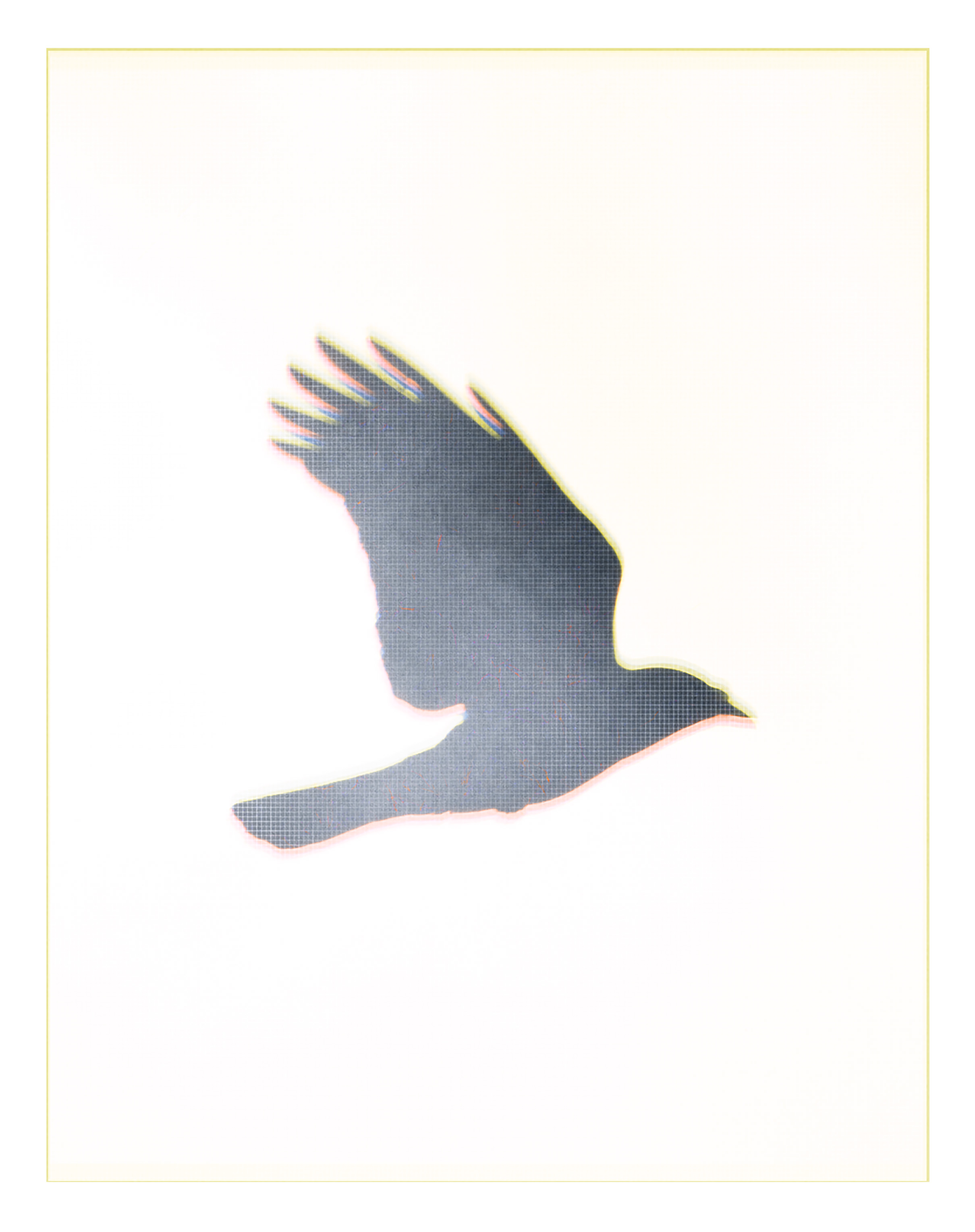 A photo collage consisting of multiple images of a crow in flight and graphics (grids). The title references a term used by scientists and others to describe increased human activity and its impact on the environment starting around 1950. The image is part of an ongoing exploration of the Anthropocene illustrating the effects of human impact on flora and fauna.